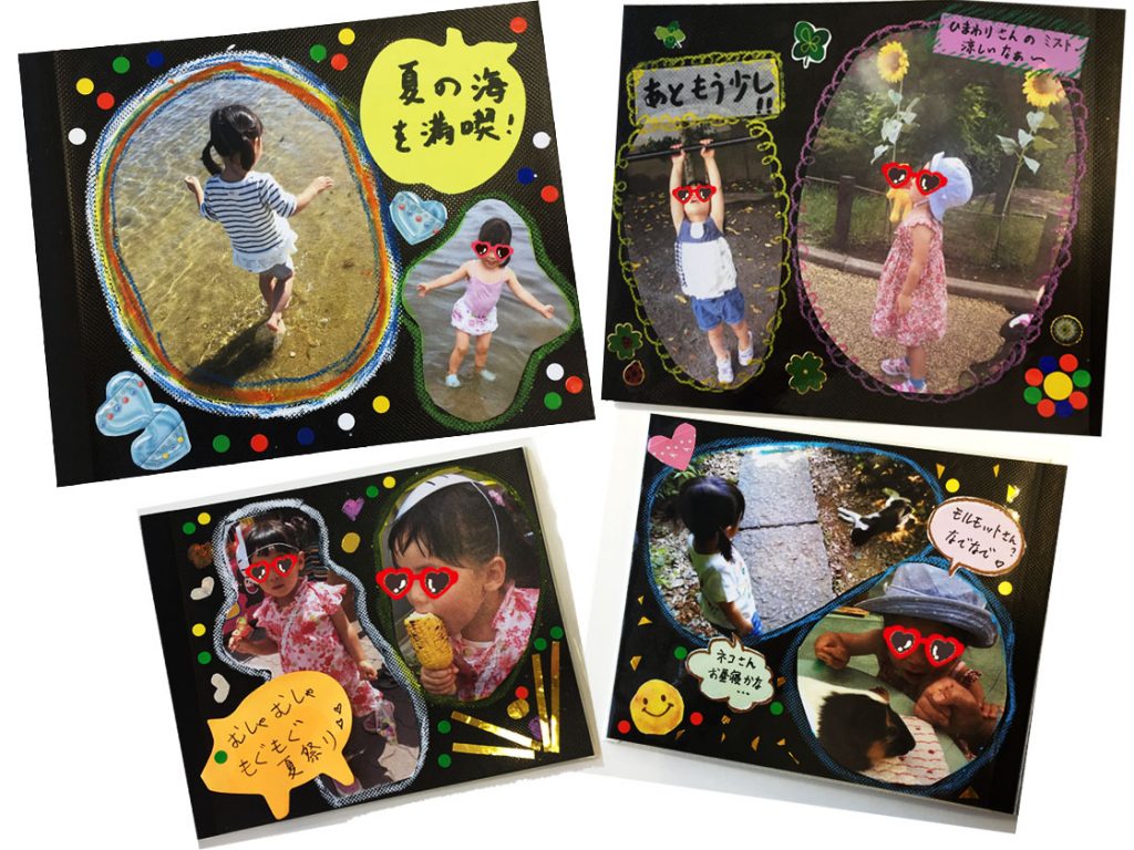 せっかくの娘のかわいい写真だから、大事にしてあげないと!やはりアルバムを作るしかないかな。でも手間がかかりそう。普通にビニールポケットのアルバムに入れるのは楽だけど、なんだか娘に申し訳なくて...ありもので、かわいいアルバムを作ってみようかな。