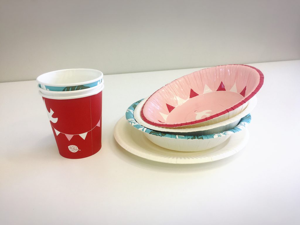 ないといっても、こんな感じの模様が付いた紙ボウルや紙コップはある。