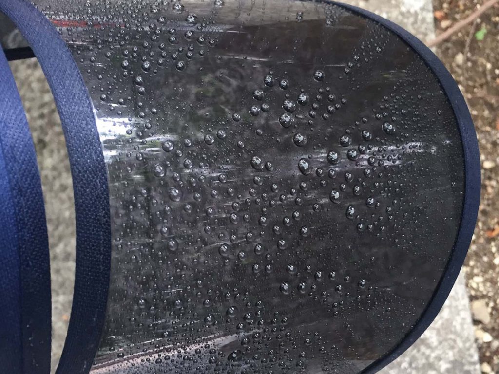 水を吹きかけてみたら、すぐに撥水効果が。キレイにはじいてくれてる!