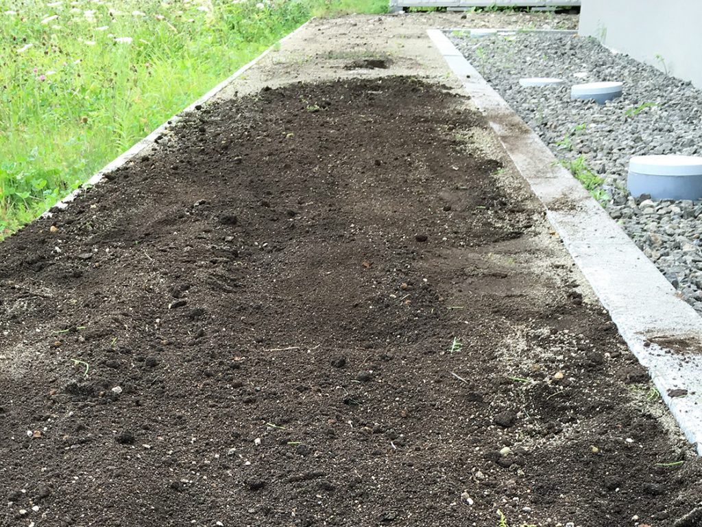 防草シートは光をしっかり遮断してくれるので、雑草が伸びにくい環境に。さらにその上に庭用砂利を敷くと、見栄えもよく防草効果もさらにUP!