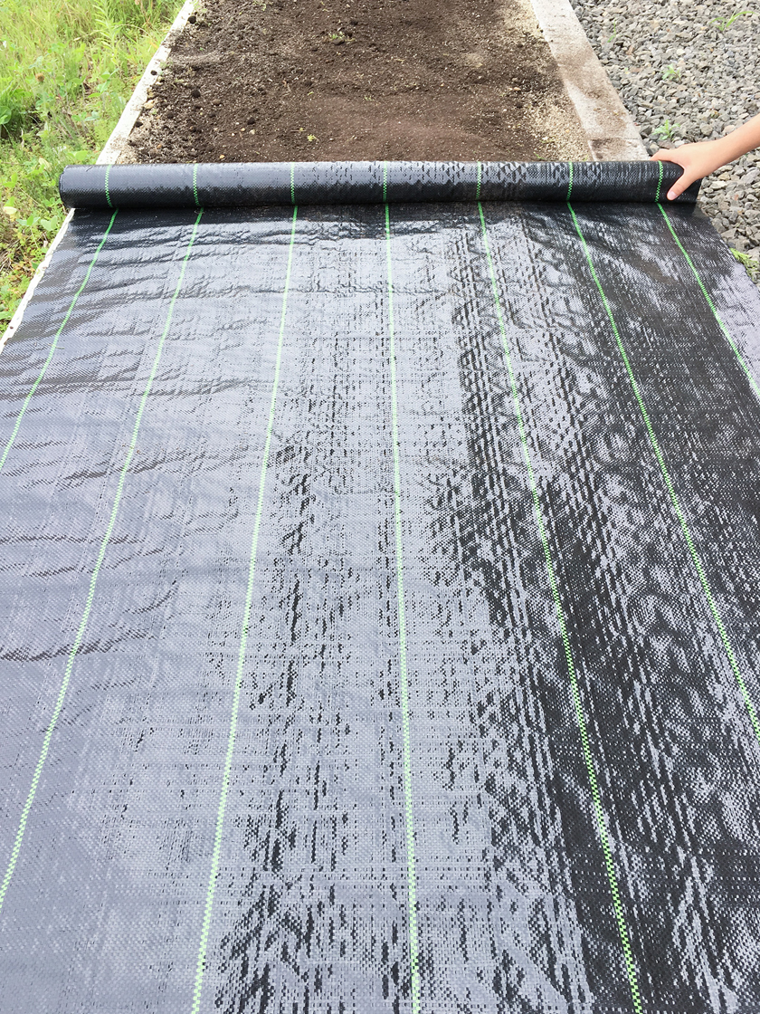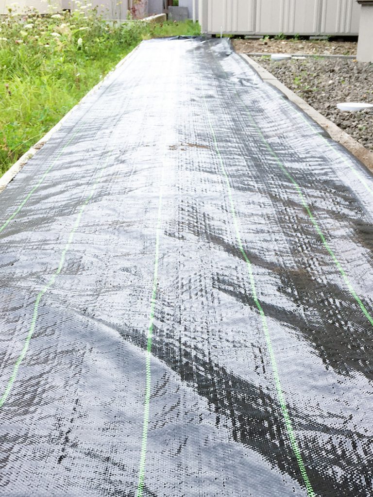 次に、防草シートをコロコロ転がしながら敷いていきます。