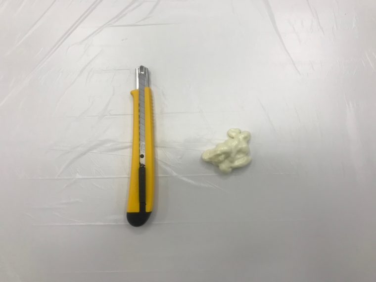 用意したのは、お菓子作りで使うような型!これに入れたらいい感じのカタチになるんじゃないかなと思います♪膨らんで固まった発泡ウレタンは手で触っても全然問題なし!カタチを整える時はカッターを使います。サクサクっと切れちゃいました♪接着剤を使えばすぐくっついてアレンジしやすい!