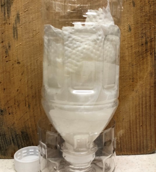 下から順に、コーヒーフィルター(4枚)、ティッシュペーパー(数枚)、キッチンペーパー(1枚)です。こういう紙を詰めるときは詰めた後に濡らしてやるとふちにぴったり張り付けられます。全部紙なので驚きの白さ!これは期待できますね(?)