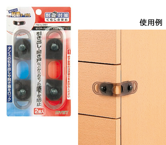 タンスの引き出しや開き戸をロックし、地震による物の落下を防ぐことができるアイテムです。付属の粘着テープで取り付けるだけ。ロックと解除も簡単なので、普段の引き出しの開け閉めに支障が無く、快適に使えます。2個入り。