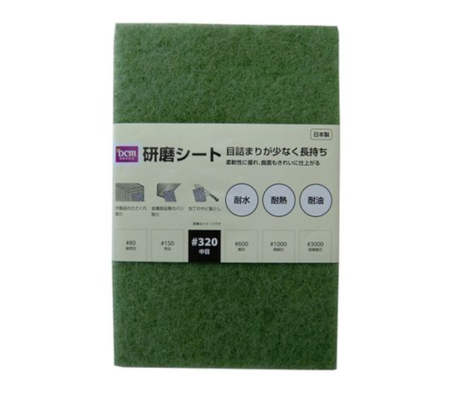 目詰まりが少なく長持ちする研磨シートです。柔軟性に優れ、曲面もきれいに仕上がります。木製品のささくれ取り、金属部品等のバリ取り、包丁のサビ落としなどに。目:中目番手:#320