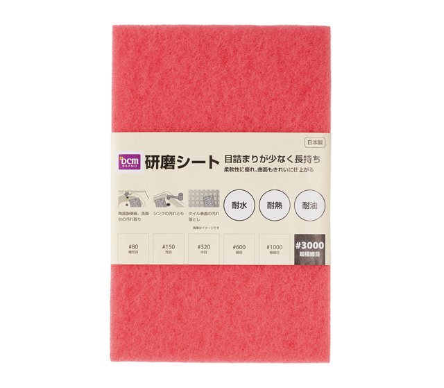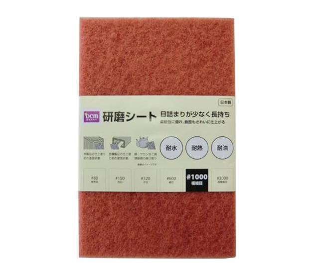 目詰まりが少なく長持ちする研磨シートです。柔軟性に優れ、曲面もきれいに仕上がります。木製品の仕上塗り前の塗面研磨、金属製品の仕上塗り前の塗面研磨、鍋・ヤカンなど調理器具の焼け取りなどに。目:極細目番手:#1000