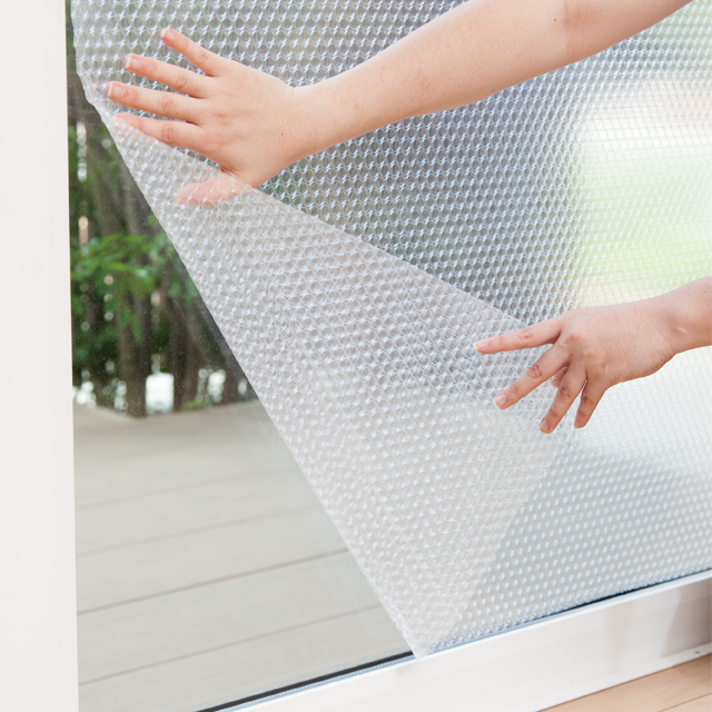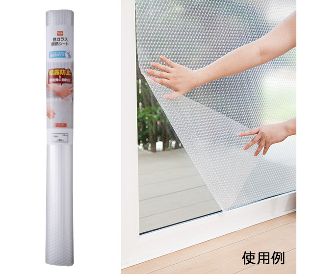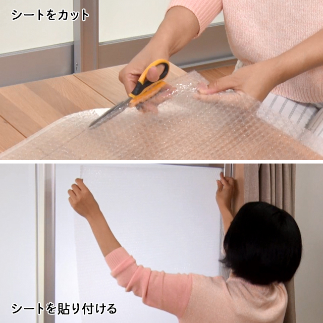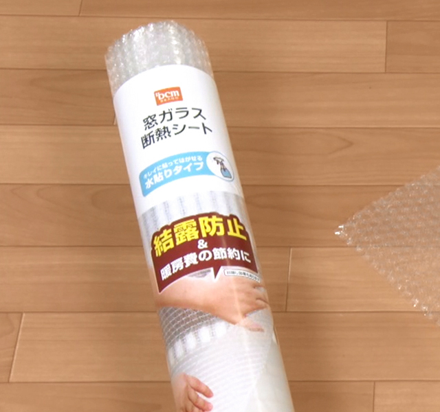 プチプチシートと同じようなシートは、厚さ約4mm。この空気の層が、熱を遮断して結露を防ぎ、断熱性を高めます。目隠し効果もあります♪
