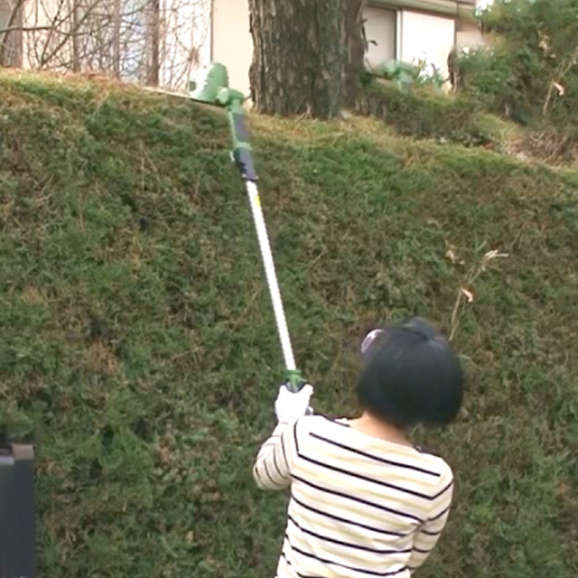生垣や芝生のお手入れに便利!高さのある生垣の剪定にはヘッジトリマー刃と着脱伸縮ポールを装着すれば作業もラクラク♪低い場所の剪定には着脱伸縮ポールを外して手持ちで使うことができます。