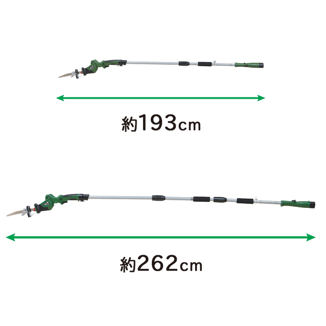 ポールの長さは、193cm・262cmと調節が可能。脚立にのぼらず高い位置の枝もラクラク剪定♪