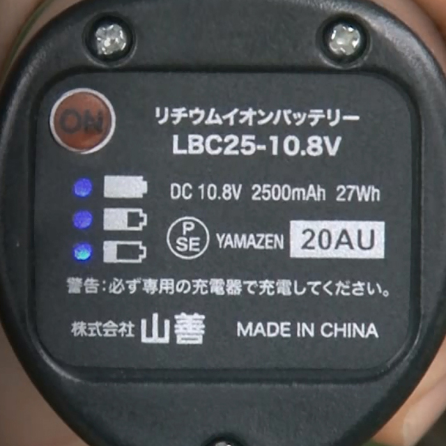 10.8Vの小型バッテリーを搭載し、軽くて使いやすく、長く使うことができます。バッテリー残量が確認できる便利な目盛り付きです。