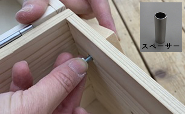●ポイントボルトを通す部分にスペーサーを入れるとフタ部分の開閉時の動きがよくなります。