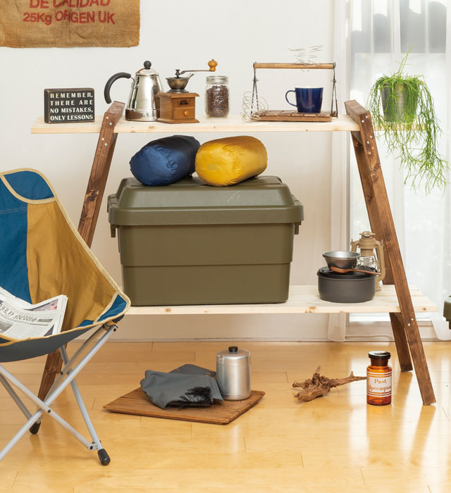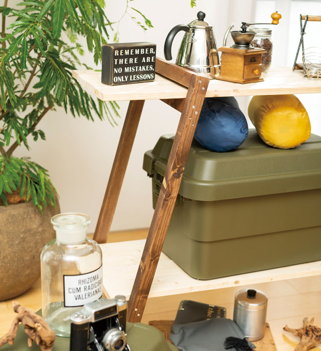 アウトドアはもちろん、家の中でも使いやすい!木製シェルフの作り方をご紹介!使わないときは棚板を外すだけでコンパクトにも♪