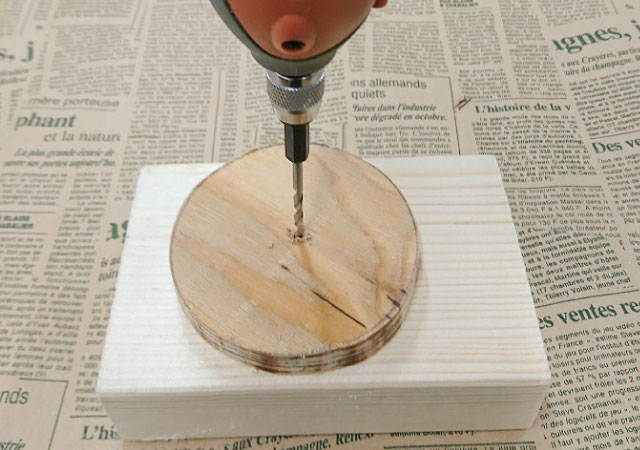 下穴をあけ、ネジを仮止めします。