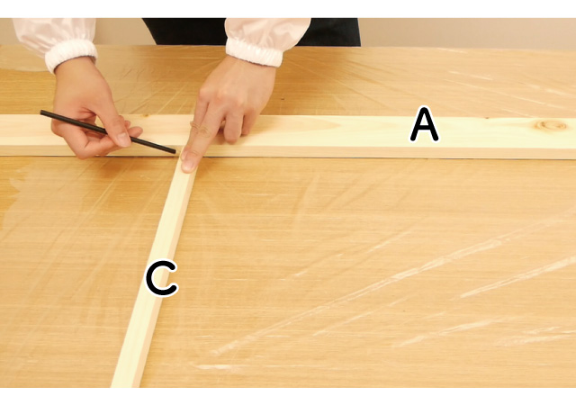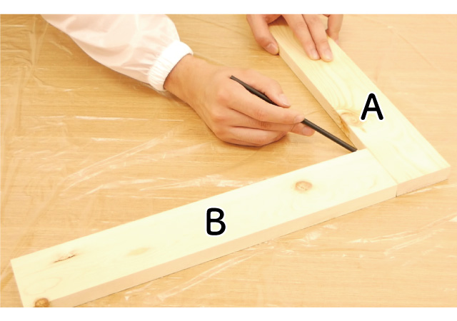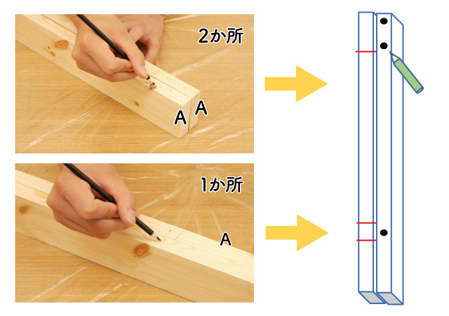 木材Aに印を付けます。