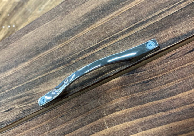 ①蝶番2ヶ所とパッチン錠を取り付けます。