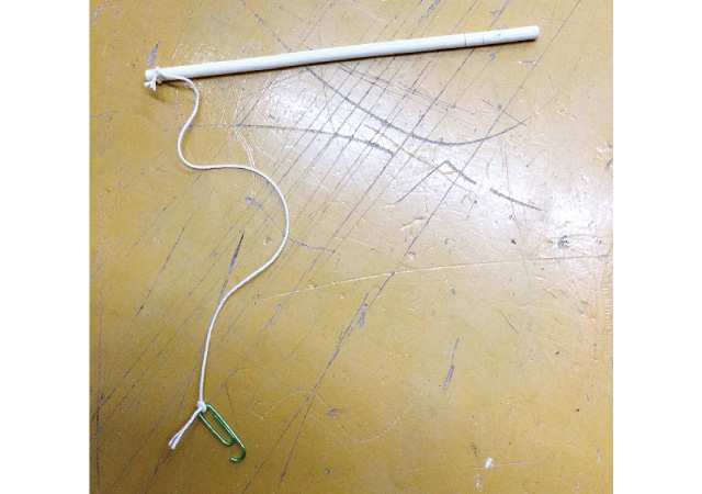 割り箸に糸を巻き付けて、糸の先にクリップをつけます。