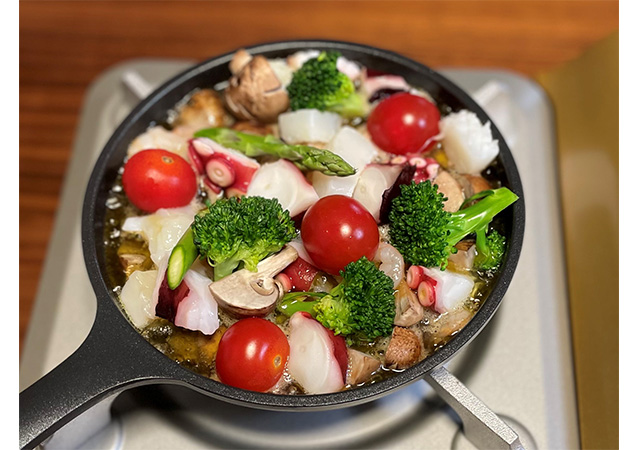 ※レシピ内にフタが登場しますが、DCMアルミスキレットにはフタは付属しておりません。ご自宅の小鍋のフタ等をご使用ください。