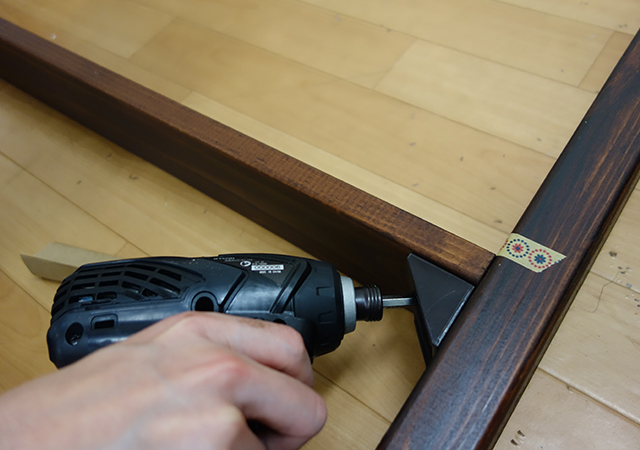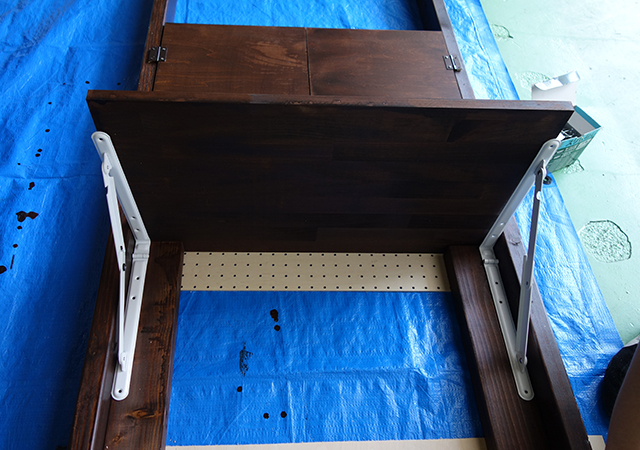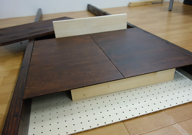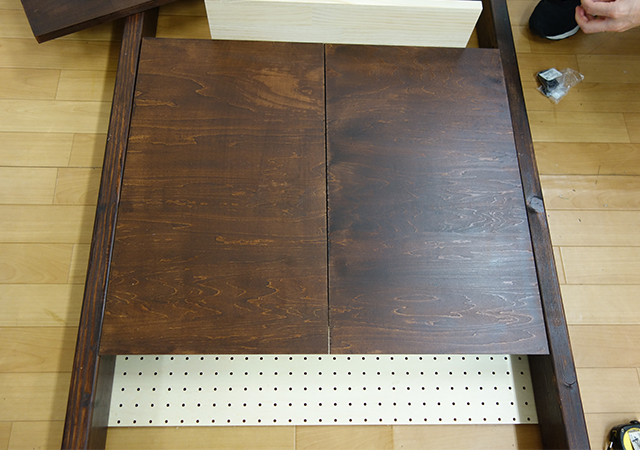 扉を開けた時にテーブルとなる部分をつくります。もう一度仮置きして取り掛かると作業がしやすいです。