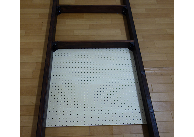 棚板(木材B)や有孔ボード(木材C)の取り付けが終わった後、次のような画像の形になっていればOKです!(有孔ボードは背面につきます。)