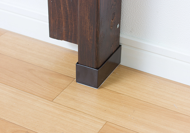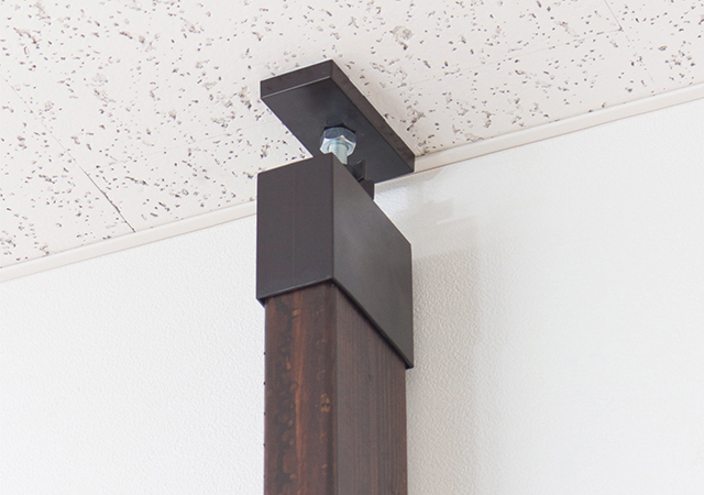 2×4材の上下にアジャスターを取り付けると、突っぱり棚の柱を設置することができます。原状復帰が必要な賃貸住宅でも、天井や壁を傷つけずに安心して設置できます。