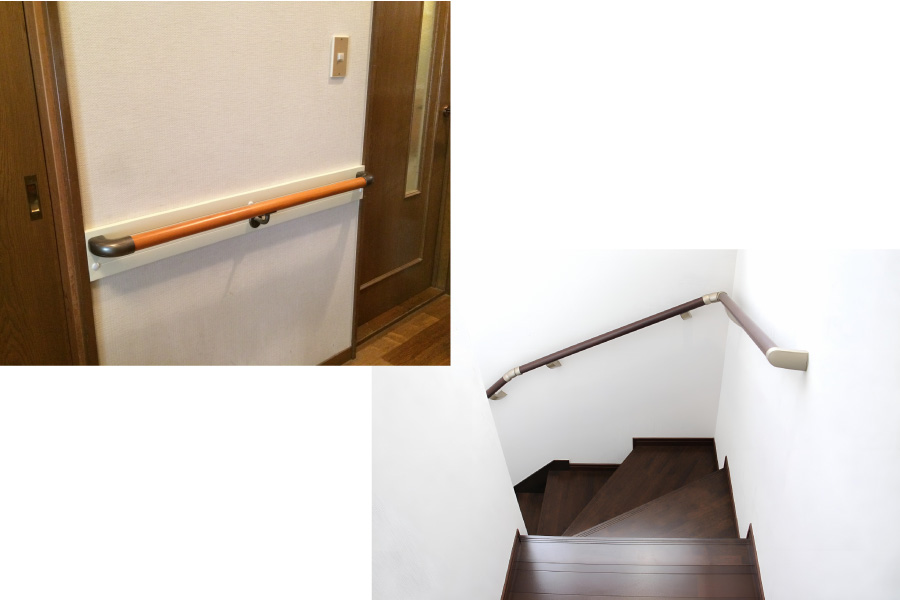 年配の方々にとって、階段や廊下での移動はときに不安を感じることがあります。手すりを設置することで、バランスを取りやすくなり、「いざという時につかまる場所がある」というだけでも、安心して移動できるようになります。特に、階段の上下や長い廊下には、しっかりとした手すりが欠かせません。壁に取り付けるタイプでは、取付位置に合わせた多様な選択肢があります。手すりは、移動時の不安を軽減し、より安全な環境を提供します。