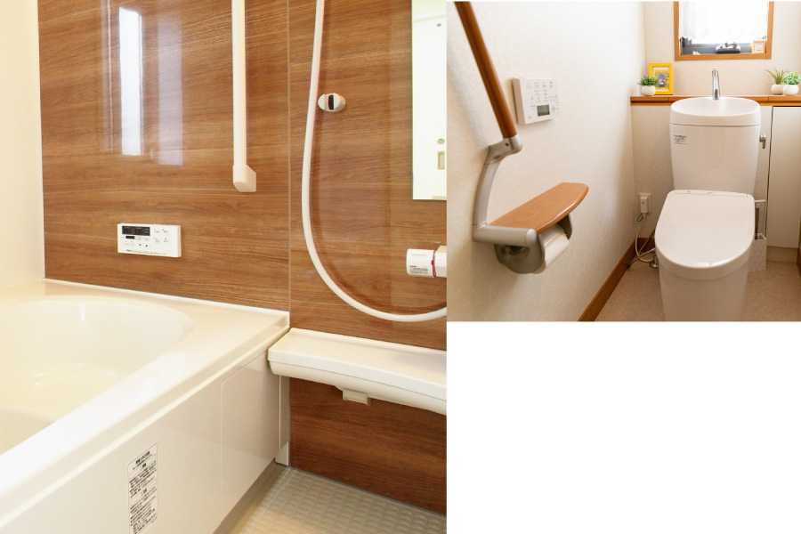 トイレや浴室は、特に滑りやすく転倒の危険が高い場所です。手すりを設置することで、立ち上がる際の負担を軽減し、浴槽の出入りや浴室内の移動時に安定感を提供します。これにより、安心して日常生活を送ることができ、独立した生活を続ける手助けとなります。耐水性や耐久性の高い手すりを選ぶことで、長く快適に使用できます。