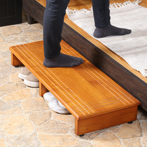 家の中の小さな段差でも、年配の方にとっては大きな障害となることがあります。段差解消スロープを設置することでつまづきを防ぎ、これらの段差をスムーズに乗り越えられるようになり、日常の移動が安全なだけでなく、楽になります。滑り止め加工が施されたスロープを選ぶと、さらに安心です。