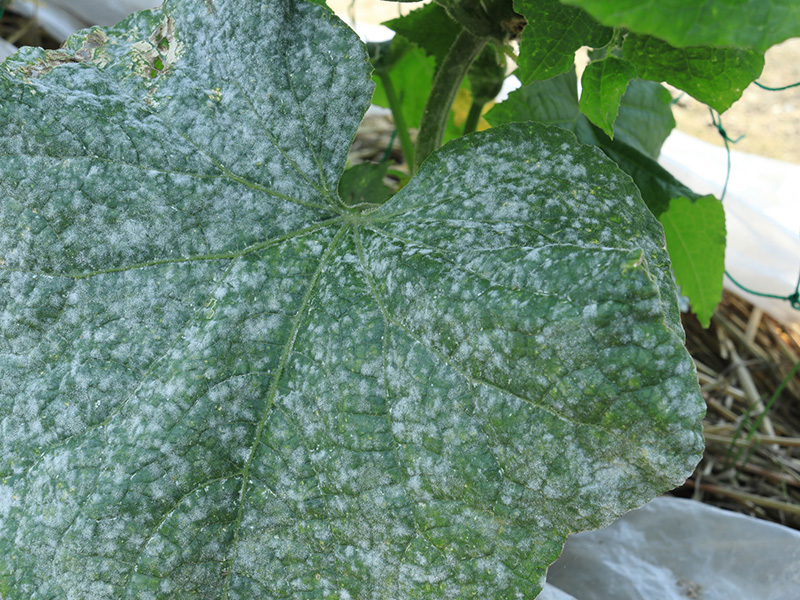 うどんこ病のカビには多くの種類があります。同じ種類の植物には感染しますが、系統が違う植物には感染しません。例えば、ウリ科のきゅうりに感染すると、同じウリ科のスイカやカボチャなどに感染する可能性はありますが、バラ科のイチゴに感染することはありません。この性質を逆手にとって、同じ種類の植物を隣で育てないこと、多品種栽培をすると感染リスクを減らすことができます。