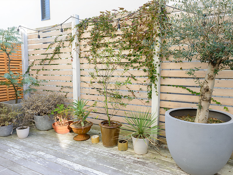 鉢植えの大きなメリットは「場所を変えやすい」ことです。例えば、土のないデッキやタイルの上でも置けるし、寒さに弱い木は冬に暖かい場所に移動しやすい。また、地植えにしてしまったら木の場所を変えるのは難しいが、鉢植えなら、「ちょっとここはバランス悪い」と思ったら、その時の気分や庭の仕上がりで木の場所を変え、より理想な庭の形に変えていきやすいのが大きなメリットです。