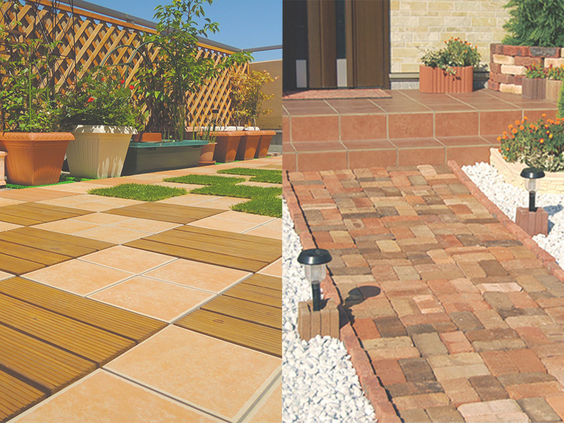 ジョイントできる敷きパネルやタイルのいいところは、何と言ってもその手軽さ!1枚から購入できるものもあり、手軽に始められますし、組合せも自由自在にカスタムできます。色を合わせてシンプルなスタイルもよし、二色使って交互に配置してもよし、人工芝のタイルを使って緑鮮やかな雰囲気もステキ・・・!理想のお庭をイメージして選びましょう。