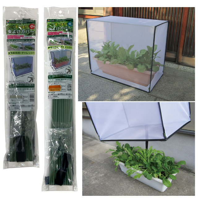 かぶせるだけのカンタン設置!アオムシやアブラムシなどの害虫の侵入をブロック。JANコード(小):4968438015668JANコード(大):4968438015675