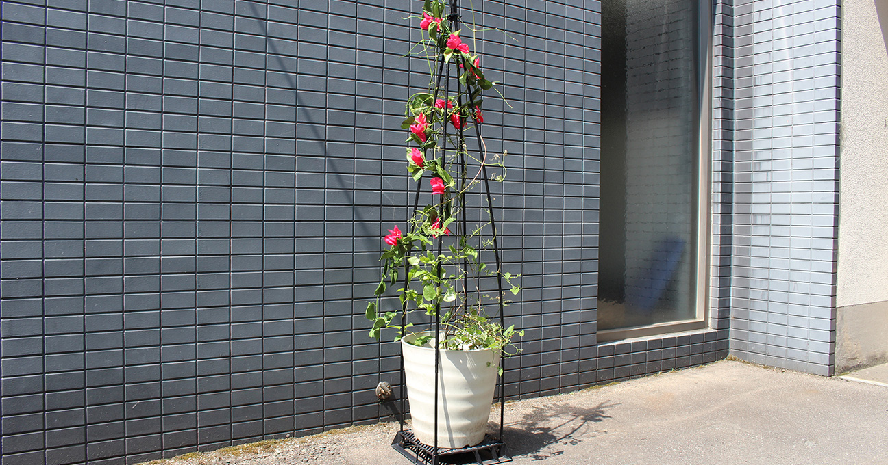 支柱高さ 120cm/150cmつる性植物を、立体的に誘引できる支柱。露地栽培の他、ブラックベースの四隅の穴に刺して使用でき、大きく仕立てる事ができます。地面がアスファルト、コンクリートの場合はブラックベースが必要です。JANコード(120cm):4968438026305JANコード(150cm):4968438026312※ご購入はお近くのDCM店舗へお問い合わせください。