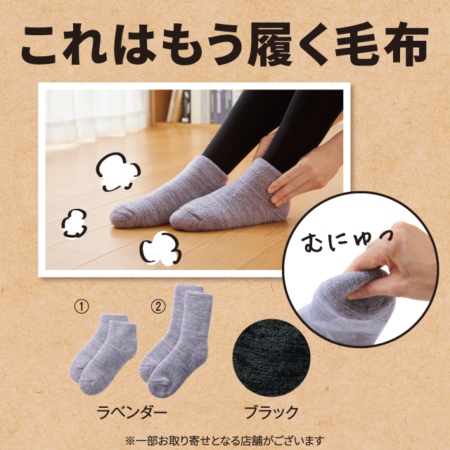 フリーサイズ(23~25cm)①ショート丈②レギュラー丈触ってわかるむにゅっと感!両面パイル加工&内側起毛加工で高い保温効果を実現しました。