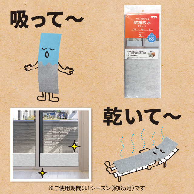 約幅30×長さ90×厚さ0.5cm 2枚入厚手のシートで結露をたっぷり吸収!吸水したあとは、乾燥させて使えます。※ご購入はDCMの店舗へお問い合わせください。