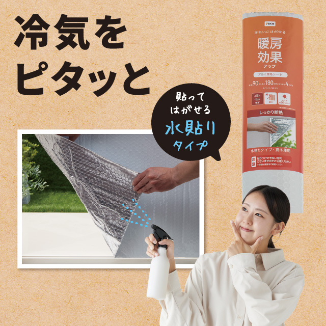 約幅90×長さ180cm×厚さ0.4cm 1枚入暖房の暖かい空気を逃がさず、外からの冷気を抑制!水貼りタイプなので、きれいにはがせます。