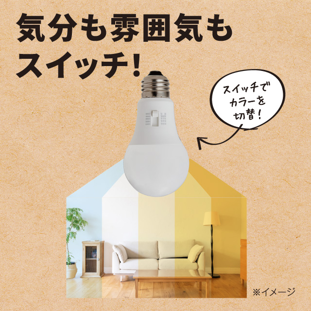 E26 40形相当リビングは昼光色で明るく、寝室は電球色で柔らかく!5色に切り替えできるので、お部屋に合わせて選べます。※ご購入はDCMの店舗へお問い合わせください。