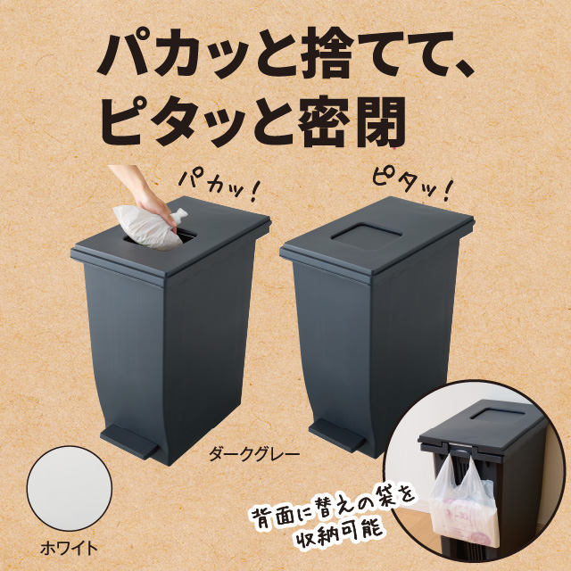 45L 約幅28.5×奥行46.5×高さ56cm気になるニオイの対策に!パッキン付きのフタでしっかり密閉します。小さなゴミは小窓から手軽にポイッ。※ご購入はDCMの店舗へお問い合わせください。