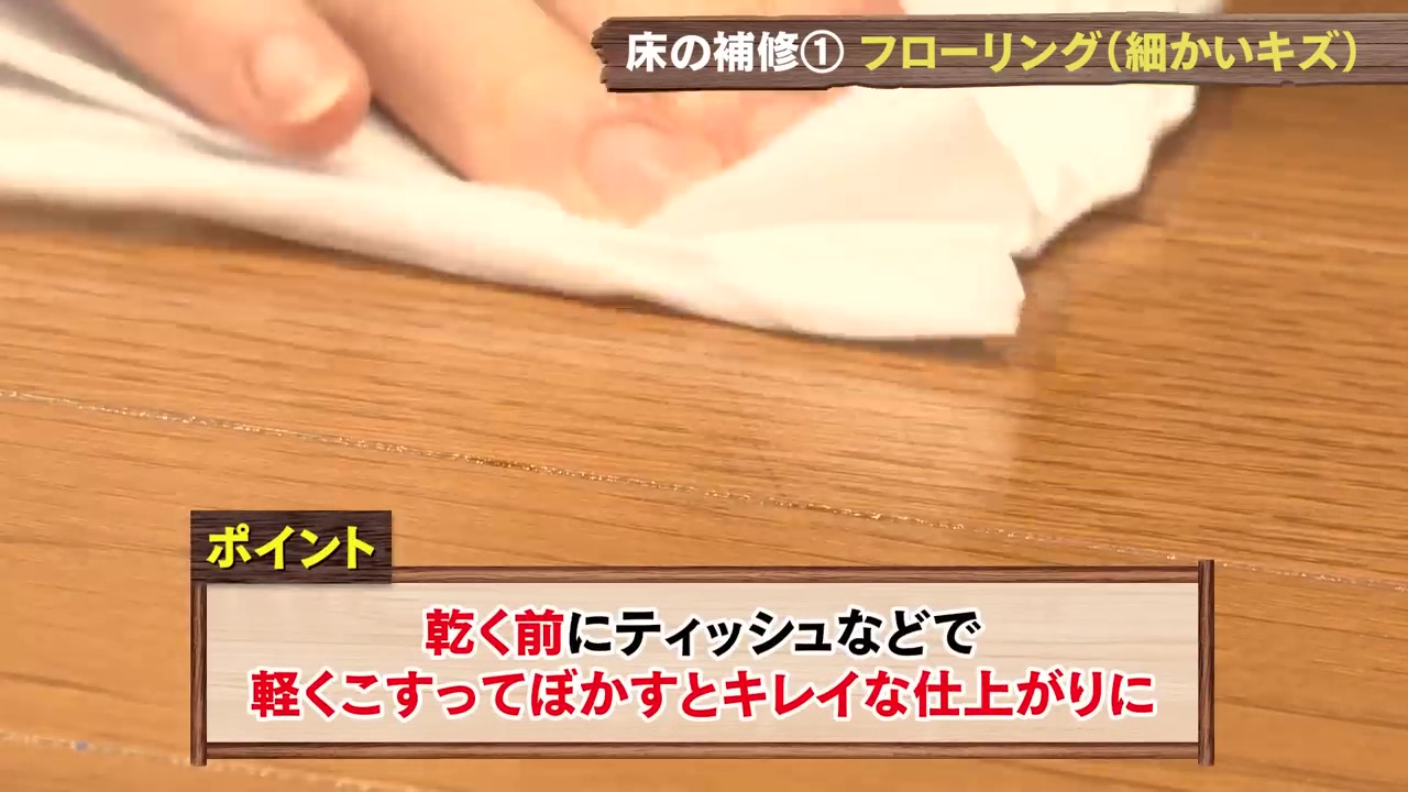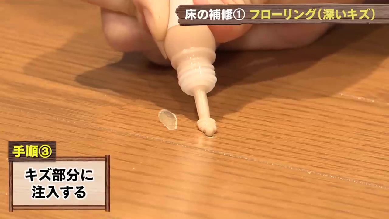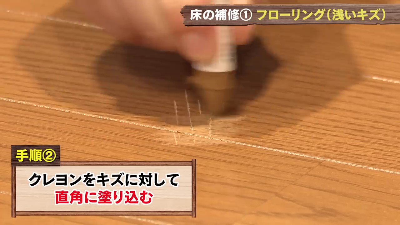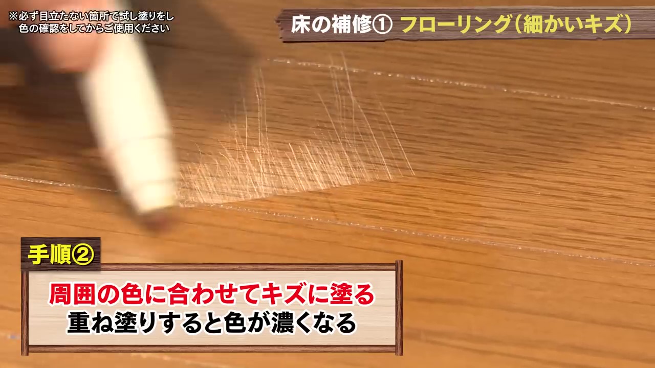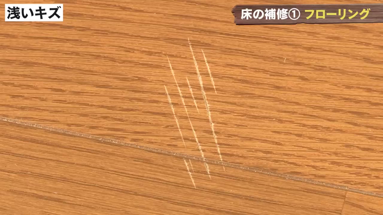 DCMで購入できるものでキズの症状に合わせたおススメアイテムを使用しながらフローリング補修をお教えします!