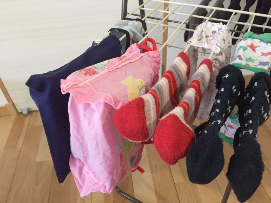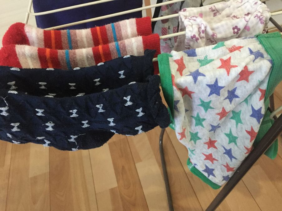洗濯物が多い場合は、こんなふうに奥にパンツ、手前に靴下を干すことも。
