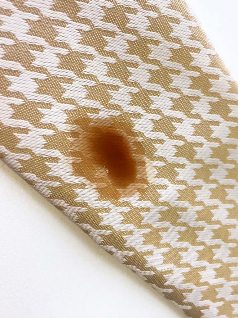 「ネクタイに防水スプレーをしておくと汚れが付きにくくなるよ。」
