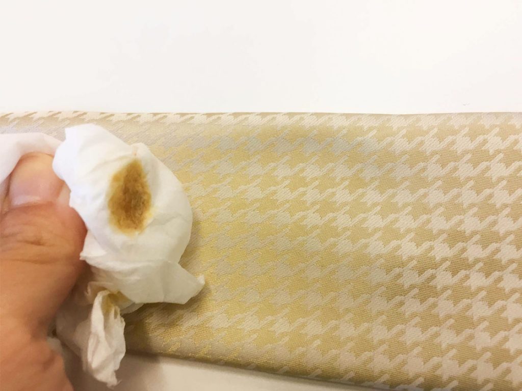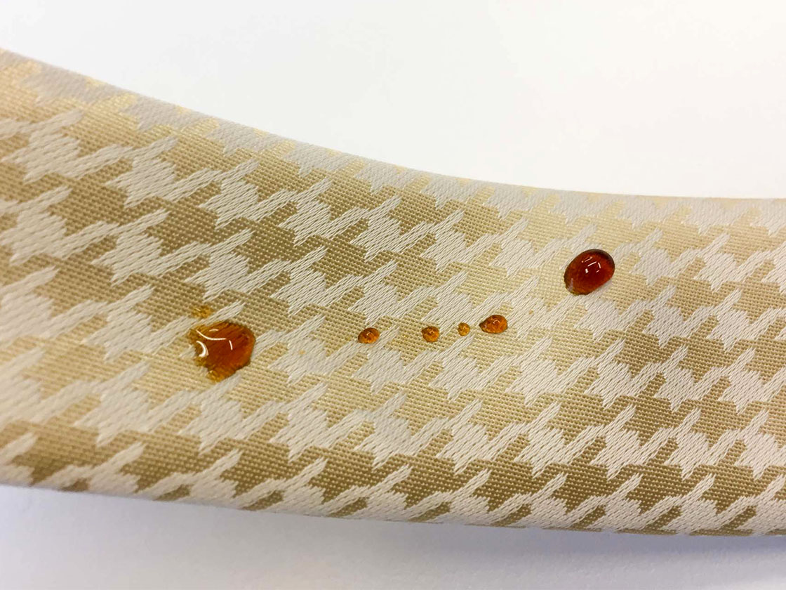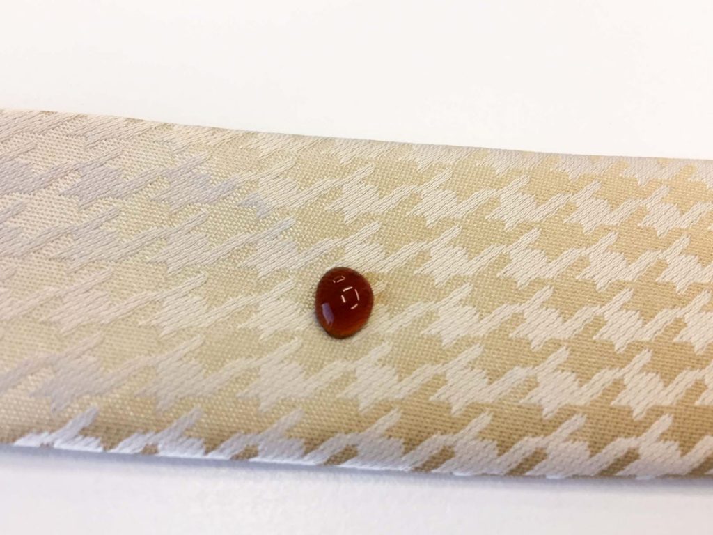 防水スプレーしていないネクタイに醤油をかけてみました。