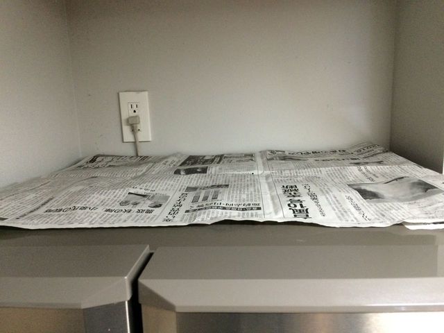 そのため、我が家では新聞紙を置いて2~3ヶ月に1回のお掃除の時にこれを交換するだけでOKにしています。ラップなどを使っている方もいらっしゃるようですが、不器用な私はうまく貼れなかったので新聞紙を使うようにしました。