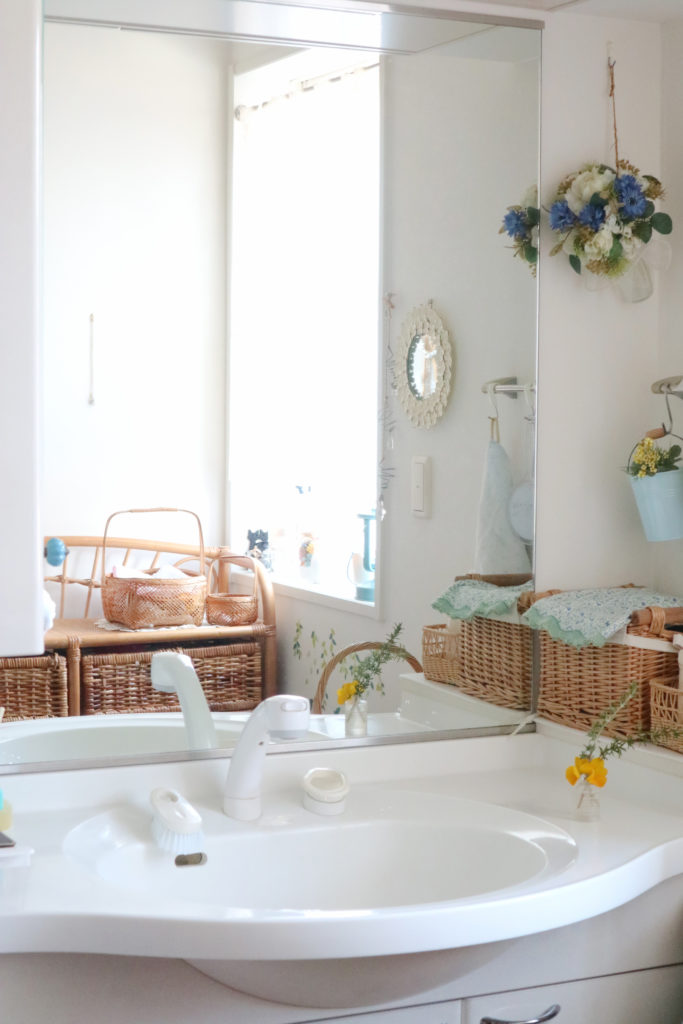 洗面所って、どのようなイメージですか?私は、爽やかで清々しい空間を思い浮かべます。白い洗面台で気持ち良く顔を洗い、クリアな鏡をみながら心ゆるやかに髪をゆわえる。そんな“なりたい暮らし”を叶えたくて、小掃除できれいキープを心掛けています。