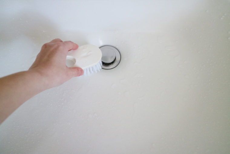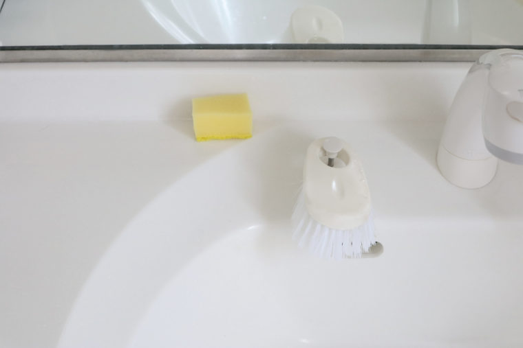 時々、ブラシやスポンジでこすり洗いを。道具を取りやすいところに置けば、気づいた時にスムーズに動けます。