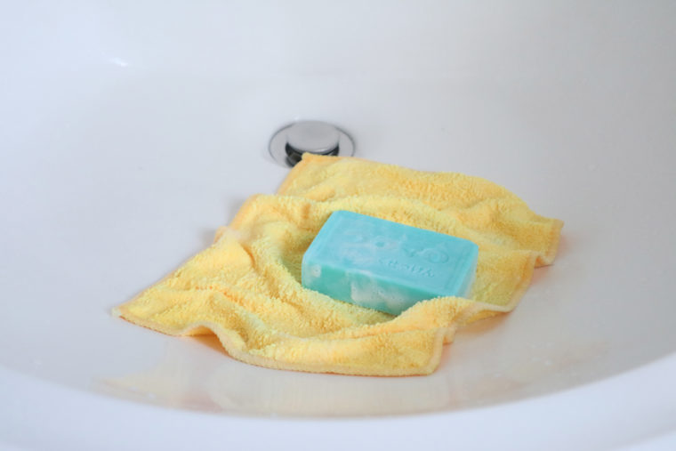 クロスを洗うと洗面ボウルも汚れます。汚したついでに一緒に洗えば、一石二鳥です♪クロスには、マイクロファイバーを愛用中。やわらかな感触や乾きやすさ、汚れ落ちの良さがお気に入り。使いやすい道具なら、掃除もラクに感じます♪風呂掃除のついでの小掃除習慣