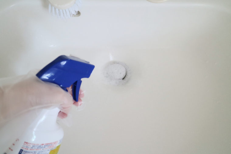 お風呂掃除で泡ハイターを使ったら、洗面台もついでにひと吹き。他と一緒に済ませてしまえば、あとあとの掃除も発生しません。結果、家事楽に。