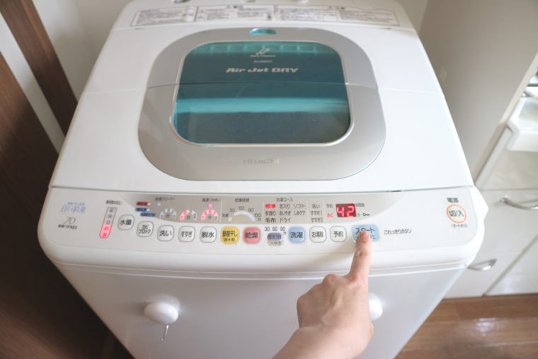 ★洗濯機スイッチON(2回目)洗濯は2回します。前夜21時に1回目を回し、その後にでた衣類を翌朝に回します。手間は増えますが、1回あたりの量が減るので、その分楽。