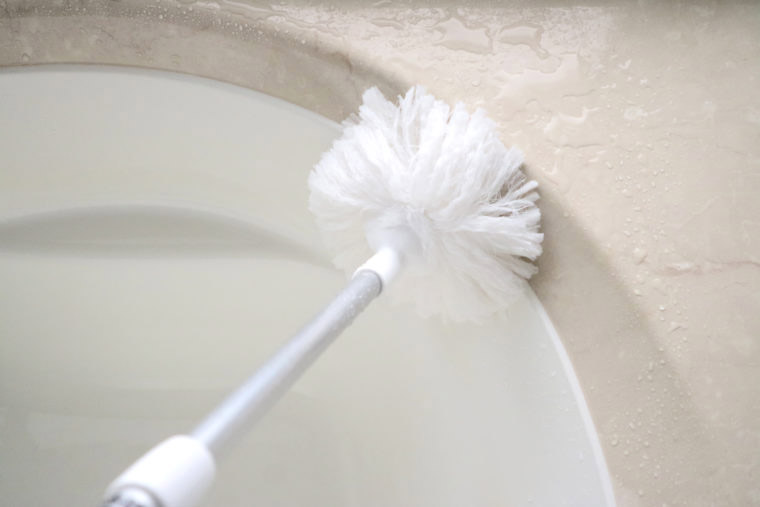 ★お風呂掃除洗剤いらずの柄付きブラシを使って、楽に掃除を。