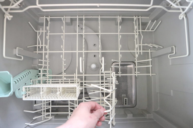 ★食洗機の片づけと掃除お弁当のおかずをレンジで温めている間に、食器を出して中をさっと掃除します。汚れがこびりつかないよう、ちょこちょこ掃除をして、大掃除の手間を省きます。