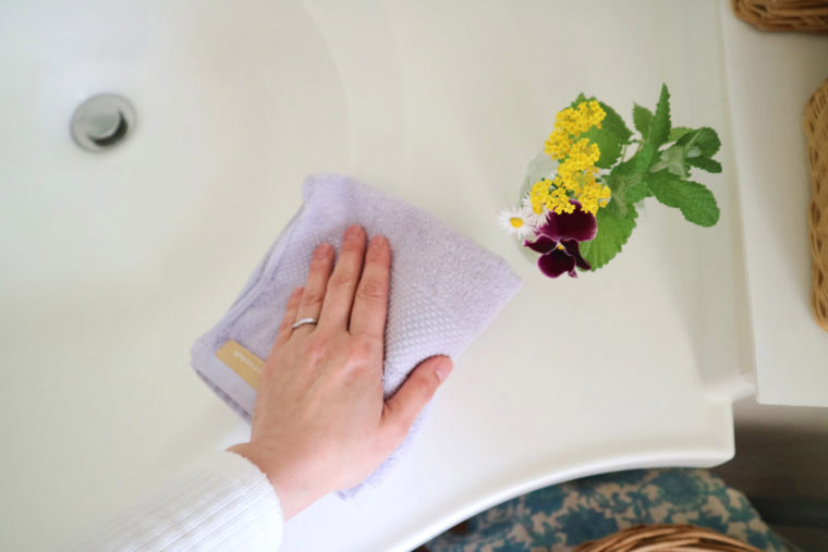 ★洗面所の1分掃除歯を磨くついでに、洗面台まわりをさっとひと拭き。洗濯前のタオルを使います。